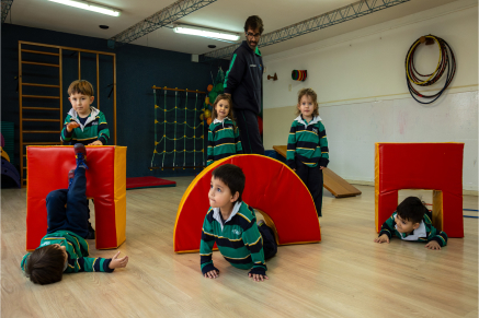 La importancia de la integración del esquema corporal y de la especialización del movimiento es esencial en la etapa inicial de la educación, por eso en Mafalda estimulamos desde diferentes disciplinas dicho desarrollo. Desde muy chiquitos necesitan afianzar sus movimientos, lo que de por sí es una fuente de diversión y aprendizaje. Nuestro gimnasio está totalmente equipado para estimular este tipo de actividad, a través de una gran variedad de material y propuestas.