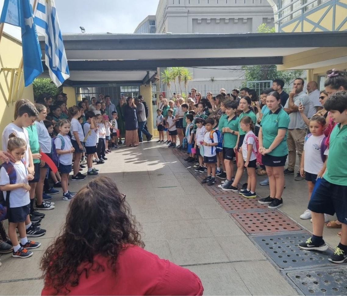 Stage 1 students recite the “Back to School” poem to the rest of the school before going home. Link |