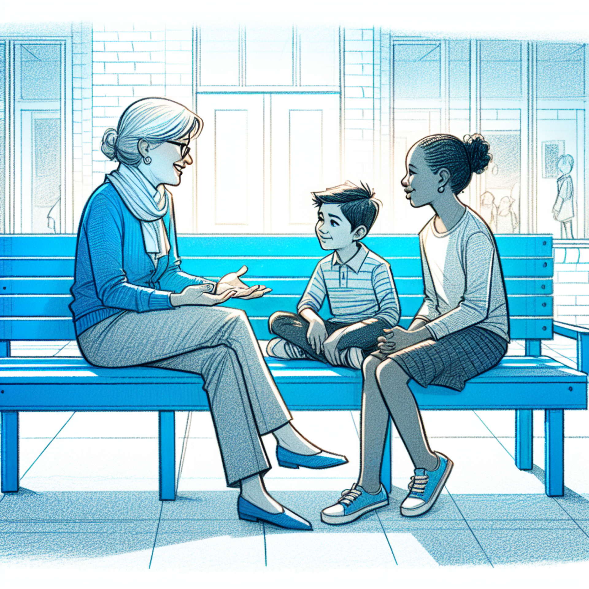 En el patio de la institución hay un pequeño banco azul que se transformó en un símbolo de apoyo y solidaridad.